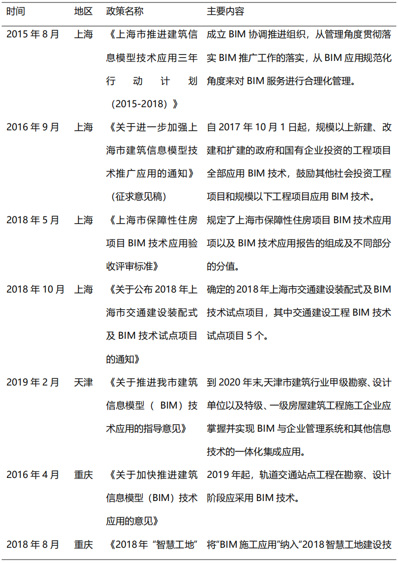 表2  部分地方BIM政策文件