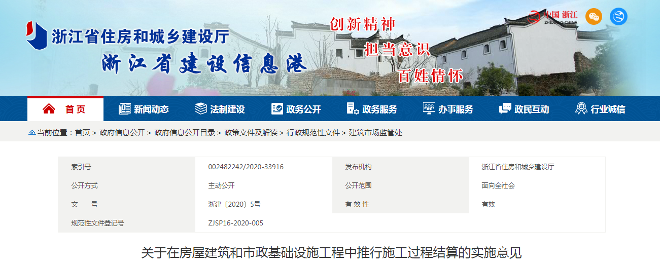 2020年5月20日,浙江省住建廳發(fā)布《關于在房屋建筑和市政基礎設施工程中推行施工過程結算的實施意見》:自6月20日起,在全省房建和市政項目中全面推行施工過程結算。