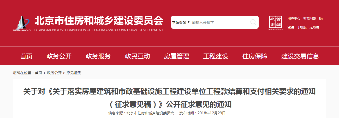 2019年1月17日,北京市住建委發(fā)布《落實房屋建筑和市政基礎設施工程建設單位工程款結算和支付相關要求的通知》,其中明確指出: