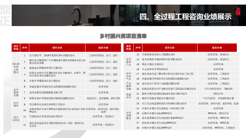 鼎正始終踐行“以全過(guò)程工程咨詢(xún)及PPP全生命周期咨詢(xún)服務(wù)為先導(dǎo)、以投資管控為主線、以項(xiàng)目增值為目標(biāo)”的一站式工程咨詢(xún)服務(wù)理念,積極探索參與鄉(xiāng)村振興的領(lǐng)域與路徑,緊跟鄉(xiāng)村振興新動(dòng)向,充分發(fā)揮工程咨詢(xún)企業(yè)高智力支撐作用,干出工程咨詢(xún)新作為!