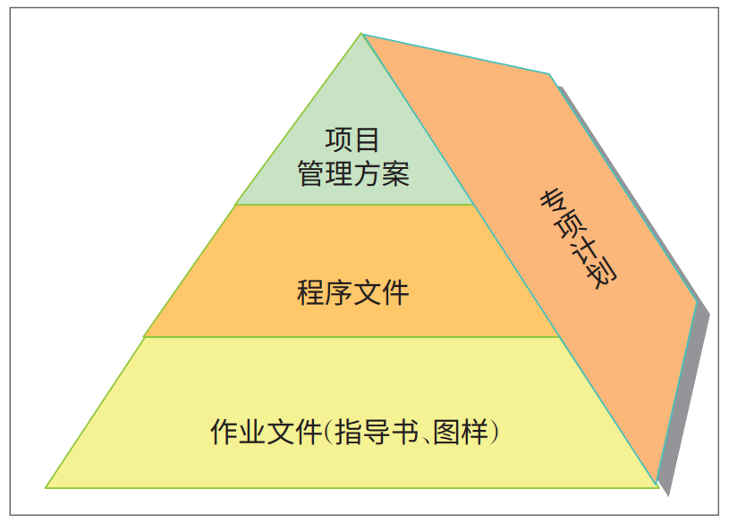 將先進、科學的項目管理技術應用到工程項目建設管理實踐中,不斷提升業(yè)主(建設單位)方的工程項目管理水平,確保工程項目建設取得成功,推動工程建設行業(yè)技術進步,是PMC的應有之義。北京創(chuàng)新瑞成工程項目管理有限公司(以下簡稱“北京創(chuàng)新瑞成公司”)項目管理團隊,歷經(jīng)20年的不懈努力,運用現(xiàn)代項目管理學的科學原理,結合工程項目建設階段組織與管理的客觀規(guī)律,進行深度研究和精準對接,形成了一批具有較強實用價值的專業(yè)化先進項目管理技術,并已成功運用于大、中、小型工程項目的建設管理實踐,既為業(yè)主取得項目成功提供了優(yōu)質項目管理服務,也為推動我國工程建設行業(yè)項目管理水平的整體提升作出了積極貢獻?,F(xiàn)結合北京創(chuàng)新瑞成公司實踐,簡要介紹幾種重要的項目管理技術及其應用方法。構建項目管理體系是PMC在項目定義階段的主要工作,項目管理體系的核心內容是文件。科學、先進、適用、完整的項目管理體系文件,是PMC(項目管理公司)專業(yè)化工程管理能力的綜合體現(xiàn),是PMC團隊能夠高效運轉的基礎。項目管理體系及其文件具有以下幾個方面的特征:一是文件化結構。項目管理體系文件分為項目管理方案或手冊、程序文件、作業(yè)文件三個層次,并通過適時制定專項計劃進行補充和擴展(圖2)。