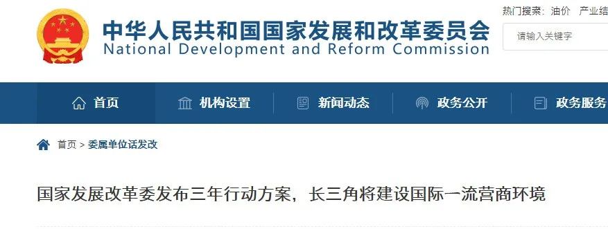 4.國家發(fā)展改革委印發(fā)《長三角國際一流營商環(huán)境建設(shè)三年行動(dòng)方案》