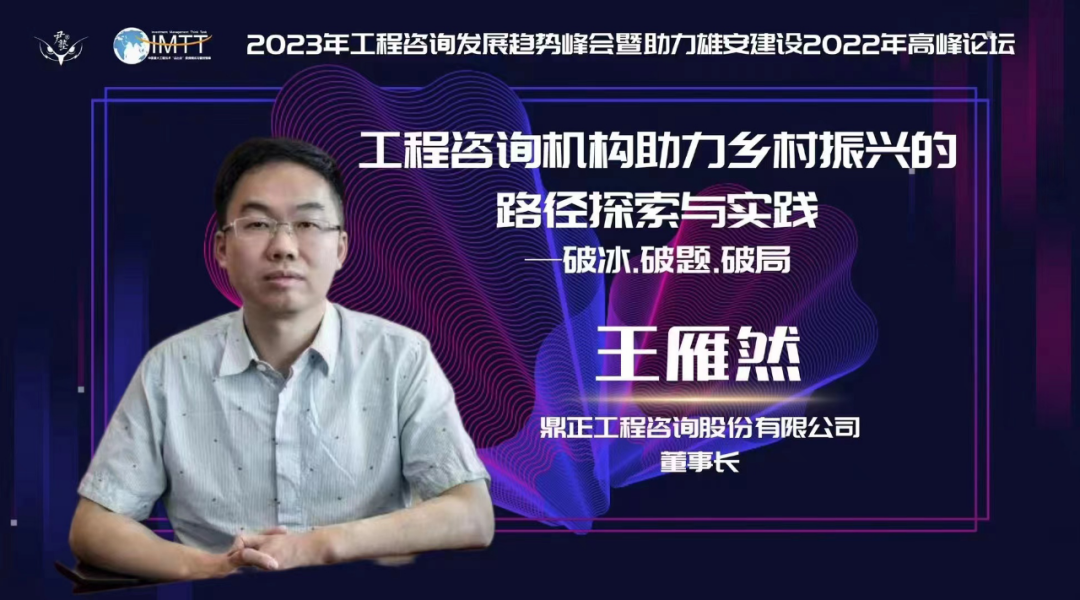 王雁然董事長受邀參與論壇并發(fā)表主題演講,他以《工程咨詢機構(gòu)助力鄉(xiāng)村振興的路徑探索與實踐》為題,從破冰、破局、破題三個層次逐步切入,先后論述了新時代背景下推進鄉(xiāng)村振興戰(zhàn)略面臨的機遇與挑戰(zhàn)。