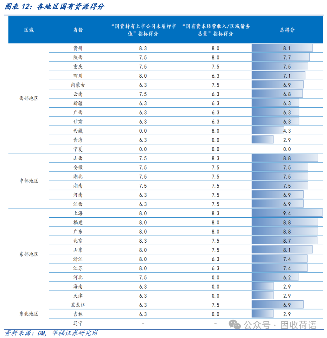 (2)中部地區(qū)的化債資源整體較一般,可結(jié)合自身優(yōu)勢(shì)充分利用各類資源緩解債務(wù)風(fēng)險(xiǎn)。例如,安徽可以利用其豐富的上市國企資源進(jìn)行化債。