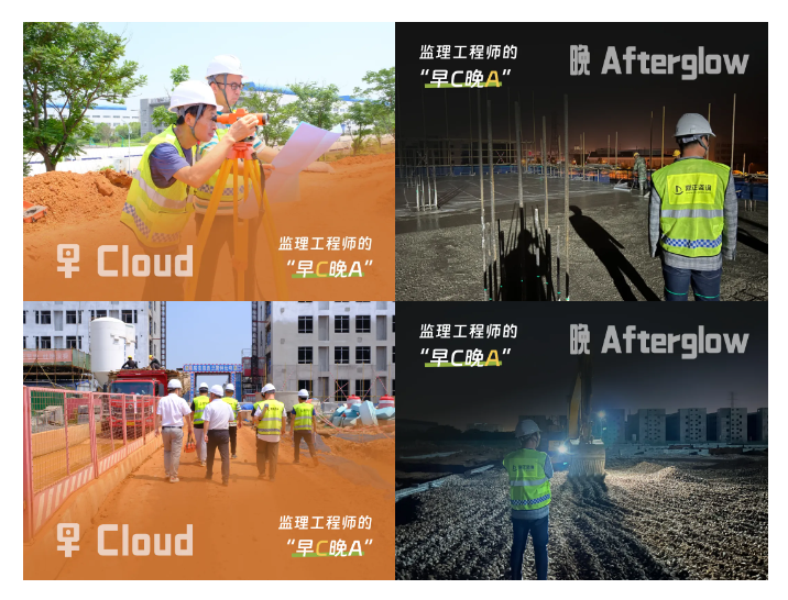早:天還未亮,監(jiān)理工程師,已經(jīng)到達(dá)施工現(xiàn)場(chǎng)。迎著Cloud(藍(lán)天白云),開啟第一輪現(xiàn)場(chǎng)巡查,頭戴安全帽,手夾施工圖,一邊巡查一邊記錄。