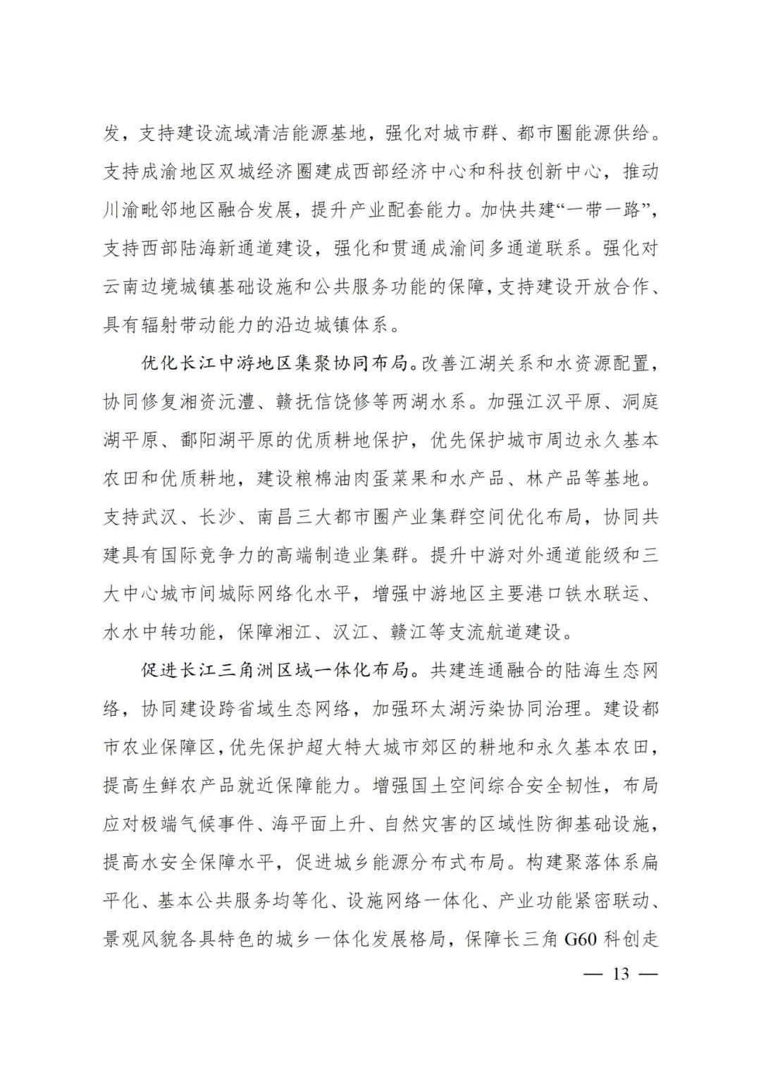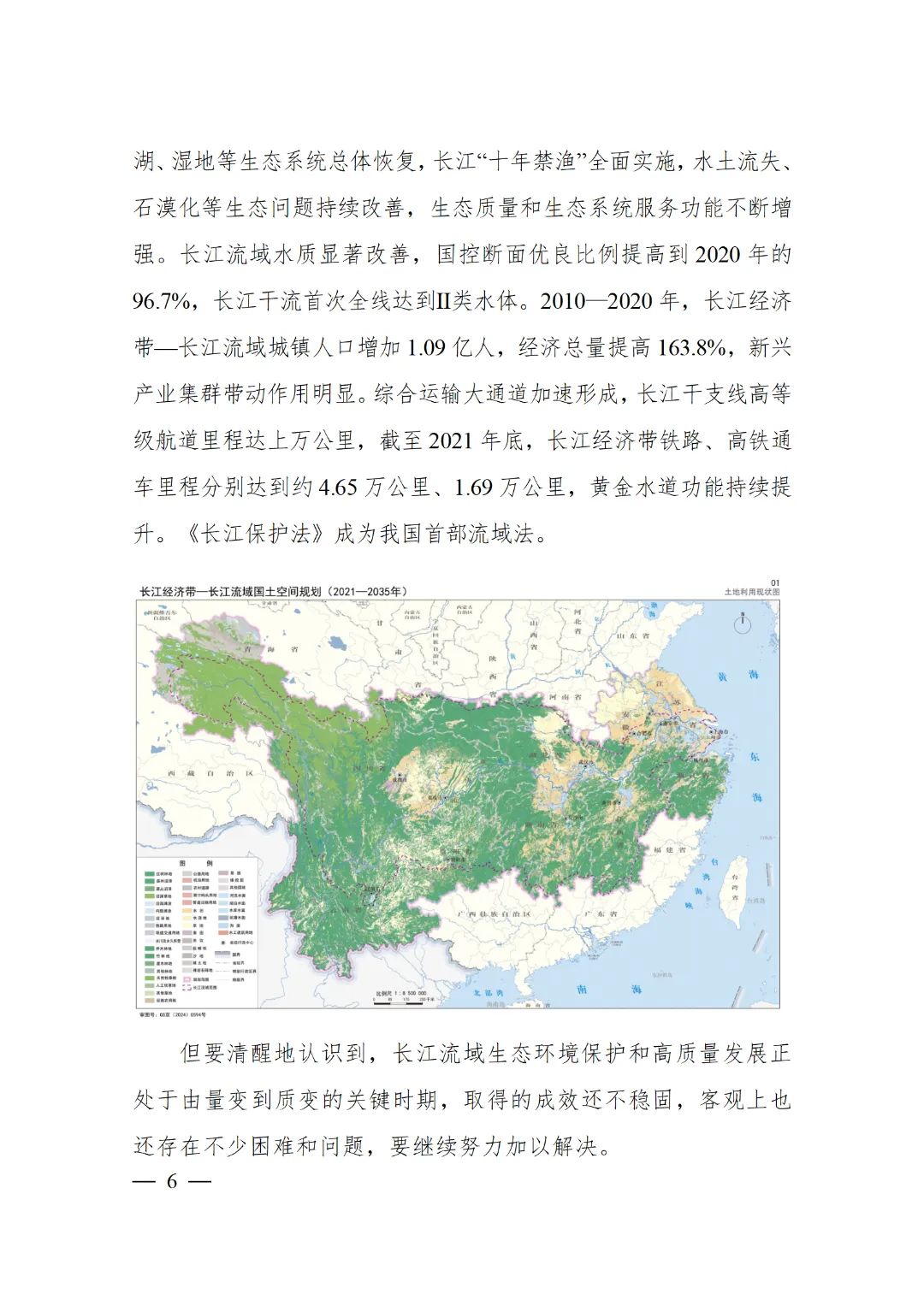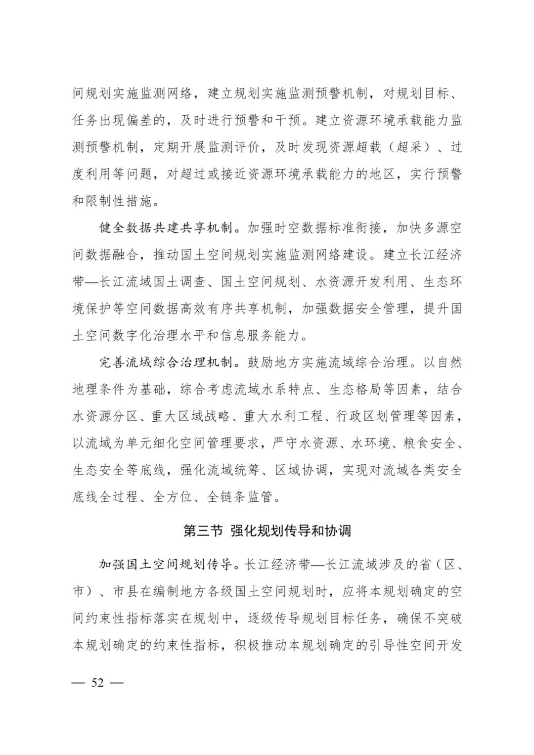 2024年2月9日,《長江經(jīng)濟帶—長江流域國土空間規(guī)劃(2021—2035年)》經(jīng)國務(wù)院批復(fù)同意。9月10日,自然資源部正式印發(fā)《長江經(jīng)濟帶—長江流域國土空間規(guī)劃(2021—2035年)》。規(guī)劃范圍包括長江經(jīng)濟帶11個省(市)全域,以及《長江保護法》規(guī)定的長江流域其他8?。▍^(qū)、市)的相關(guān)縣級行政區(qū)域,共計1173個縣級行政區(qū)域。規(guī)劃范圍包括陸域國土和內(nèi)水、領(lǐng)海。其中,陸域面積240萬平方公里。(后附規(guī)劃范圍詳細表格)規(guī)劃期限為2021年至2035年。