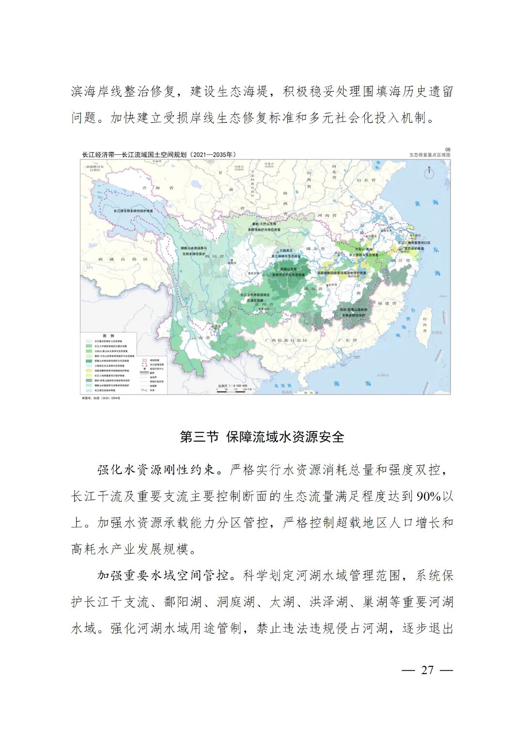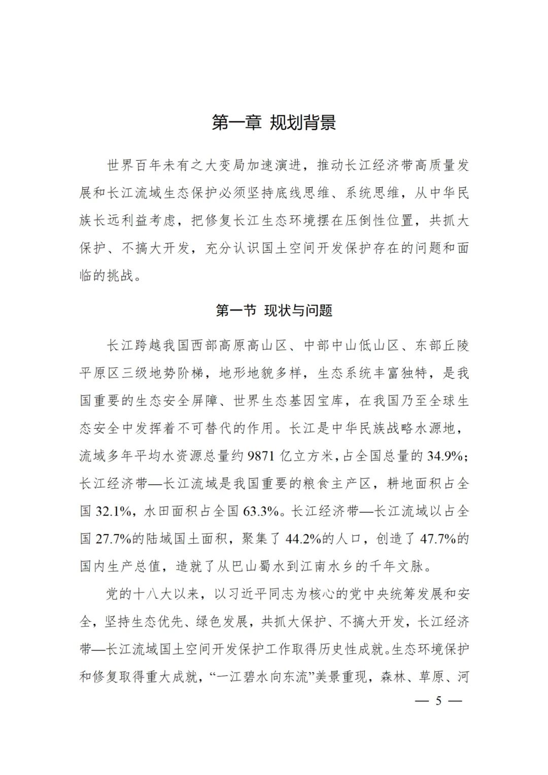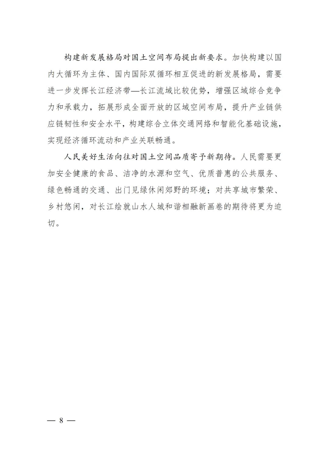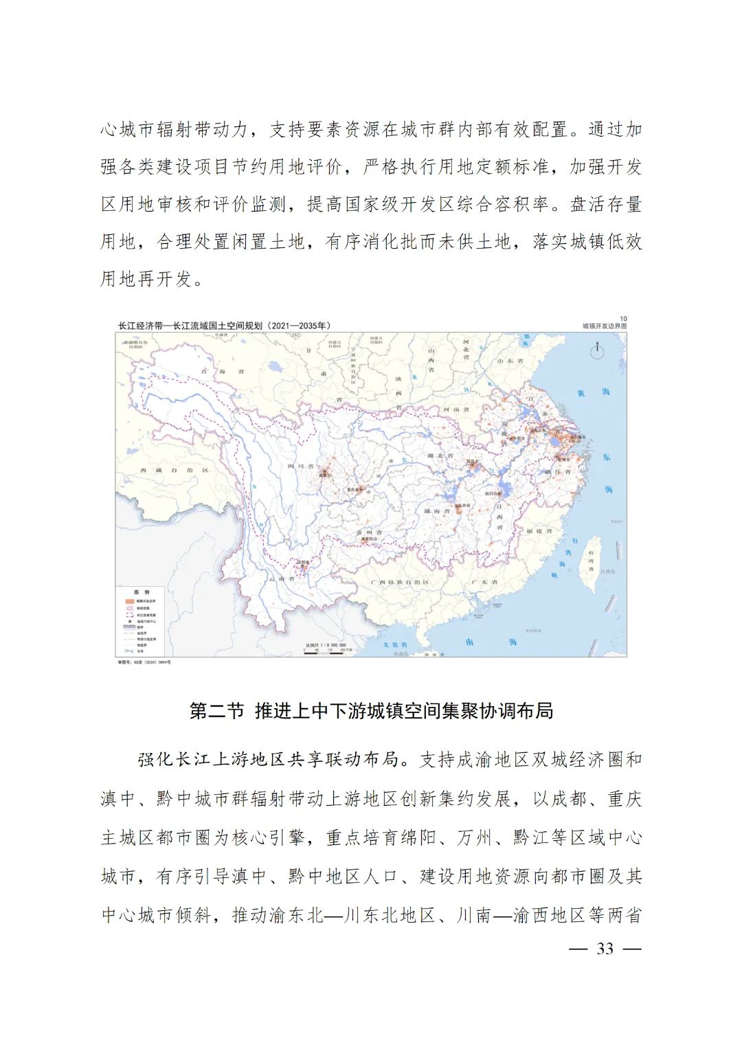 2024年2月9日,《長江經(jīng)濟帶—長江流域國土空間規(guī)劃(2021—2035年)》經(jīng)國務(wù)院批復(fù)同意。9月10日,自然資源部正式印發(fā)《長江經(jīng)濟帶—長江流域國土空間規(guī)劃(2021—2035年)》。規(guī)劃范圍包括長江經(jīng)濟帶11個省(市)全域,以及《長江保護法》規(guī)定的長江流域其他8?。▍^(qū)、市)的相關(guān)縣級行政區(qū)域,共計1173個縣級行政區(qū)域。規(guī)劃范圍包括陸域國土和內(nèi)水、領(lǐng)海。其中,陸域面積240萬平方公里。(后附規(guī)劃范圍詳細表格)規(guī)劃期限為2021年至2035年。
