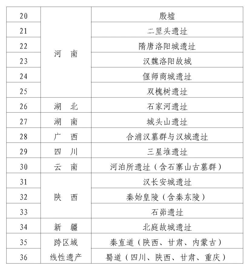附件:重要大遺址清單(第一期)