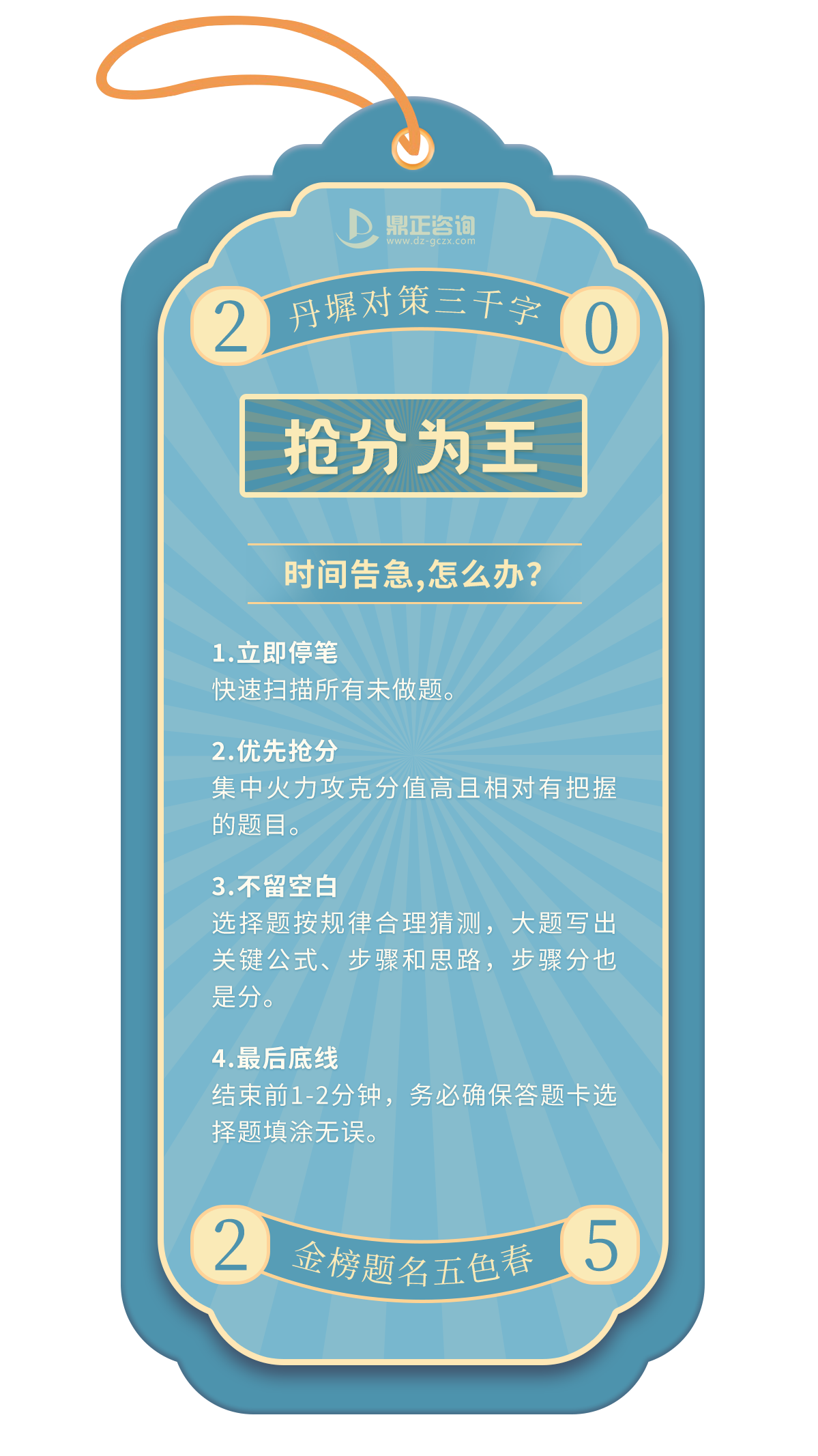 一年一度的高考即將拉開帷幕,全國1335萬學(xué)子,即將統(tǒng)一奔赴人生的重要考場,十年寒窗磨一劍,只為能夠在這一次迎接光明的未來!決戰(zhàn)時(shí)刻,除了扎實(shí)的知識,從容應(yīng)對考場內(nèi)外的“小意外”同樣關(guān)鍵。今天,鼎正人特別為莘莘學(xué)子準(zhǔn)備了這份「高考應(yīng)急錦囊」,匯集常見突發(fā)狀況的實(shí)用應(yīng)對策略,助大家穩(wěn)住心態(tài),全力發(fā)揮,讓每一滴汗水都不負(fù)期待!