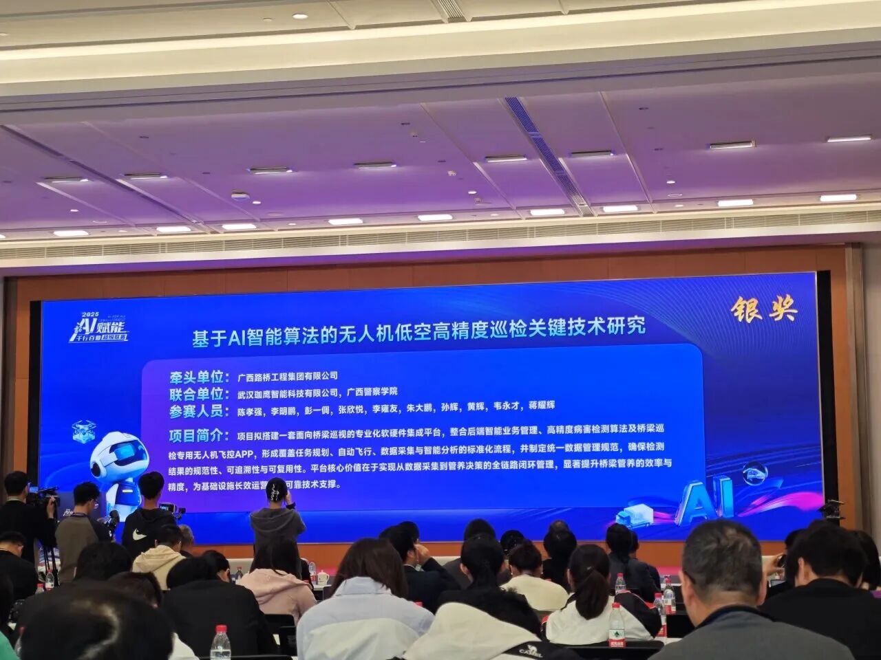 近日,2025年“AI賦能千行百業(yè)超級聯(lián)賽”交通行業(yè)創(chuàng)新大賽在南寧開賽。鼎正參股企業(yè)武漢珈鷹智能科技有限公司與廣西路橋工程集團(tuán)有限公司聯(lián)合組隊(duì)參賽,以綜合評分位列前三的優(yōu)異成績,榮獲2025年“AI賦能千行百業(yè)超級聯(lián)賽”交通行業(yè)創(chuàng)新大賽銀獎(jiǎng)。