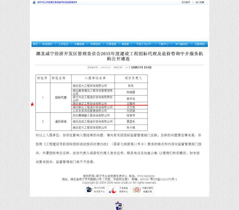 【經(jīng)營(yíng)成果】我司入圍湖北咸寧經(jīng)濟(jì)開發(fā)區(qū)管理委員會(huì)2015年度建設(shè)工程招標(biāo)代理及造價(jià)咨詢中介服務(wù)機(jī)構(gòu)庫招標(biāo)代理單位