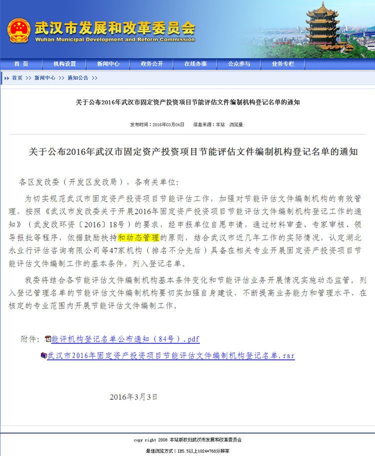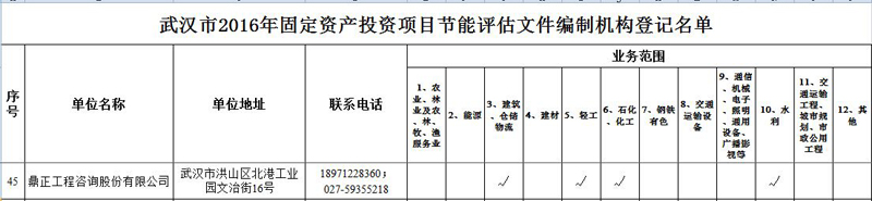 【經(jīng)營成果】我司入選2016年武漢市固定資產(chǎn)投資項(xiàng)目節(jié)能評(píng)估文件編制機(jī)構(gòu)登記名單