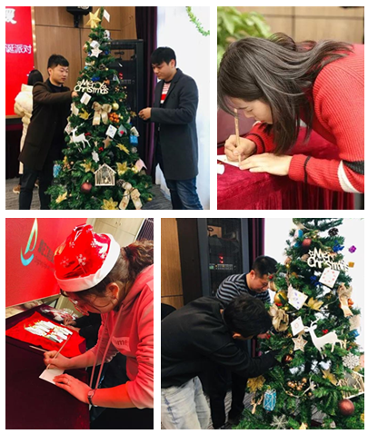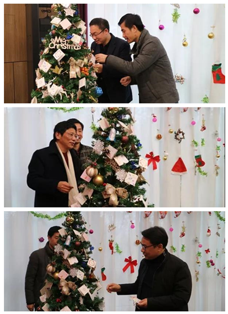 平安夜,行政人事部的同事們化身“圣誕老人”,貼心的為每一位同事準備了平安果;由鼎正大家庭共同裝飾的圣誕樹掛滿了大家親手寫的祝??ㄆ?,為圣誕節(jié)的到來更添一份濃濃的節(jié)日色彩。