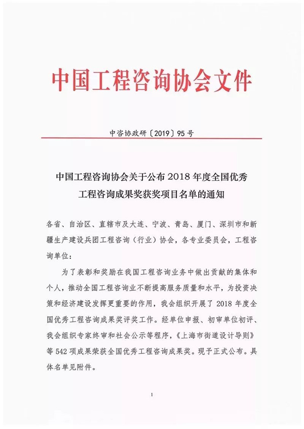 “全國優(yōu)秀工程咨詢成果獎”自1996年經(jīng)國家發(fā)改委批準(zhǔn)正式設(shè)立,后經(jīng)國務(wù)院監(jiān)察部確認保留,并由中國工程咨詢協(xié)會每兩年組織評選一次的工程咨詢行業(yè)的全國性獎項,旨在表彰和獎勵在我國工程咨詢業(yè)務(wù)實踐中做出突出貢獻的集體和個人,獲獎項目被認為是代表我國工程咨詢界最高水平的項目,其工程咨詢成果具有創(chuàng)新性和推廣應(yīng)用前景,能夠積極地推動全國工程咨詢業(yè)服務(wù)質(zhì)量和水平的不斷提高,促進投資決策科學(xué)、規(guī)范地實施,更好地為我國經(jīng)濟建設(shè)發(fā)展提供專業(yè)的咨詢服務(wù)。