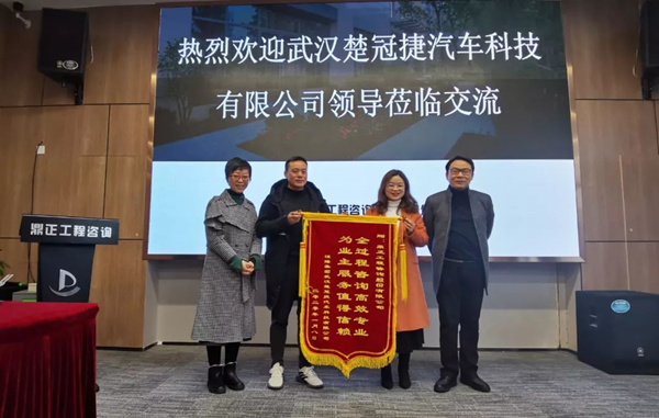 2020年1月14日,武漢楚冠捷汽車科技有限公司龔經(jīng)理、朱主任蒞臨鼎正咨詢公司,特向?yàn)槠涠趶S房建設(shè)項(xiàng)目提供全過程工程咨詢服務(wù)的鼎正咨詢團(tuán)隊(duì)及項(xiàng)目負(fù)責(zé)人程正一贈(zèng)送錦旗并表達(dá)感謝。