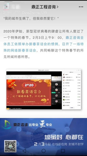 因疫情防控的需要,很多行業(yè)不得不延遲復(fù)工,建設(shè)行業(yè)亦是如此。為有效應(yīng)對這次疫情,將其影響降到最低,鼎正工程咨詢股份有限公司領(lǐng)導(dǎo)層快速反應(yīng),制定了一系列緊急預(yù)案,采取應(yīng)對疫情的各項措施,并開展遠(yuǎn)程辦公和線上培訓(xùn)學(xué)習(xí)。