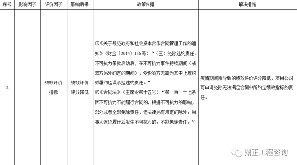 在控制最嚴(yán)的1-2月,全國大部分項(xiàng)目處于停工狀態(tài),即便通過后期補(bǔ)救措施適當(dāng)?shù)刳s工,但停工停業(yè)等行政命令在一定時(shí)期內(nèi)造成工期的延誤是必然的,也將影響政府方對(duì)PPP項(xiàng)目建設(shè)期績效評(píng)價(jià)的評(píng)分。