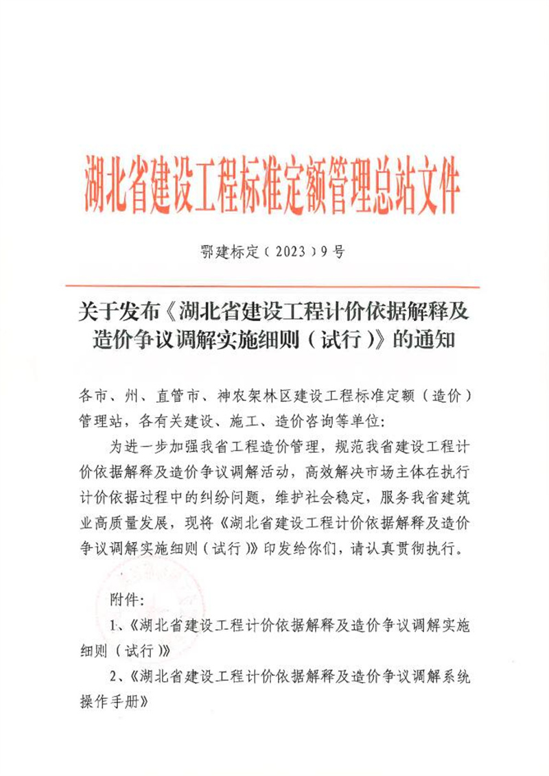 轉發(fā)關于發(fā)布《湖北省建設工程計價依據(jù)解釋及造價爭議調(diào)解實施細則(試行)》的通知